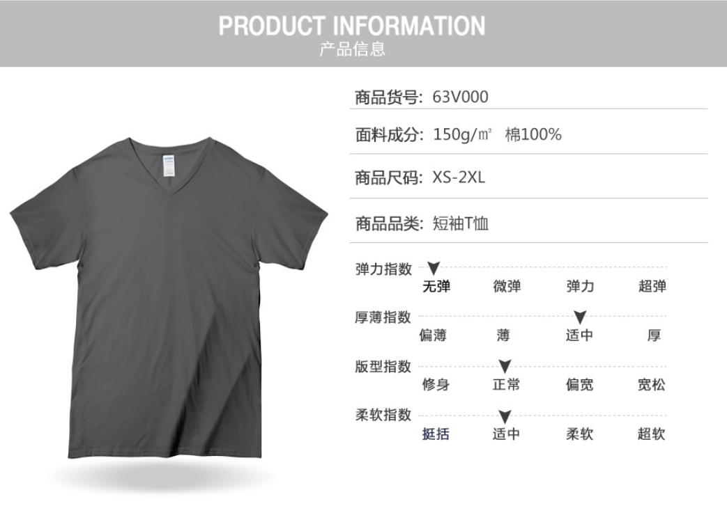 150g成人V領短袖T恤