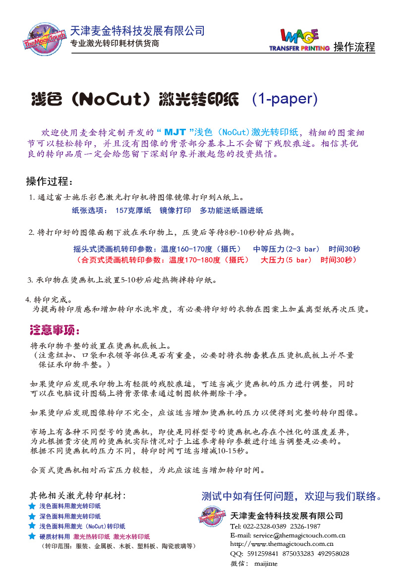 淺色無痕激光轉印紙介紹