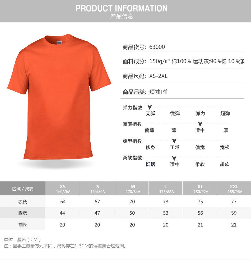 180克全棉圓領T恤衫